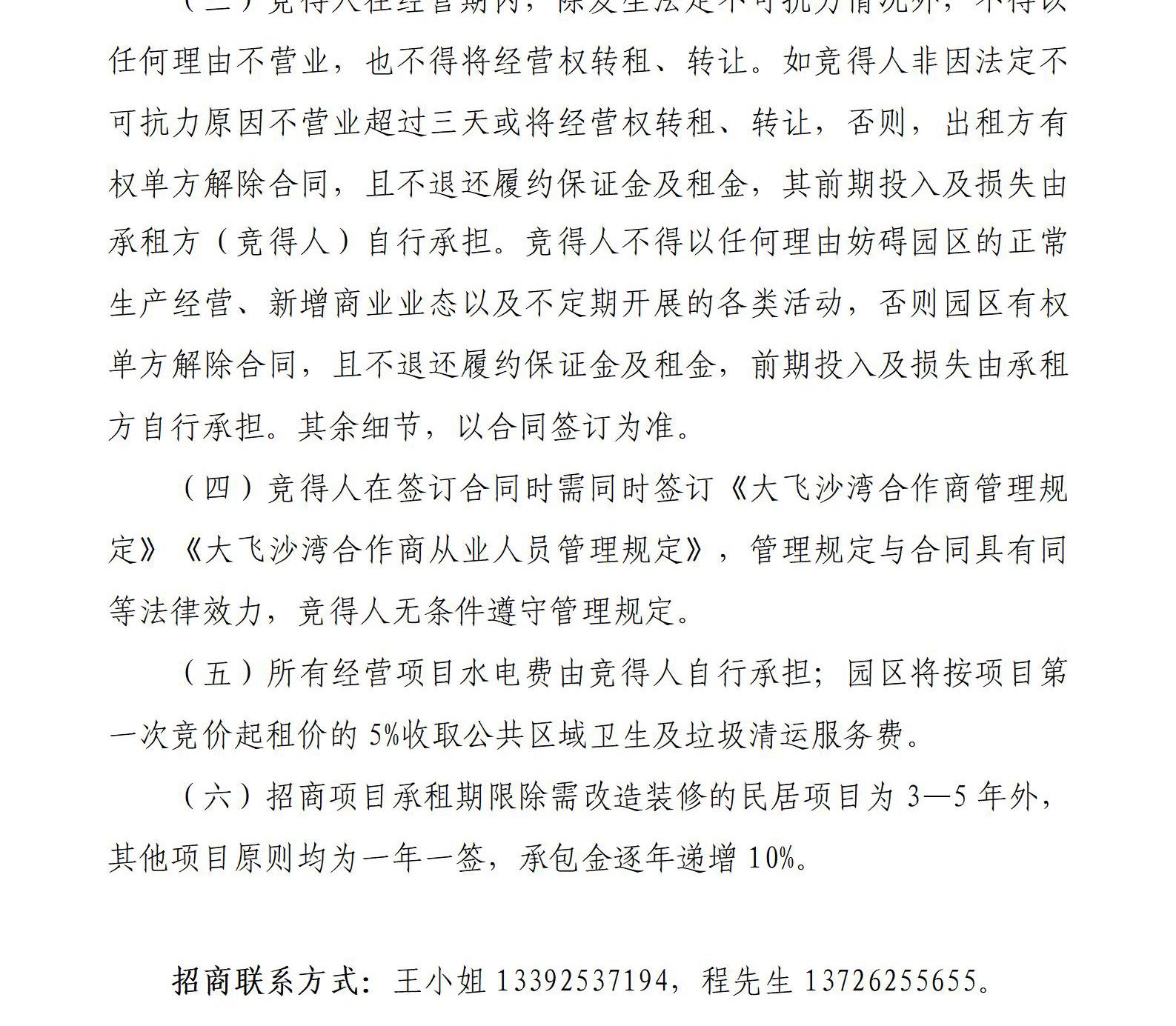 大飛沙灣運(yùn)營(yíng)二次招商公告