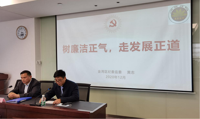 為筑牢廉潔思想防線,壓實“一崗雙責”,12月2日,聯(lián)港公司黨支部特邀請區(qū)紀委副書記、監(jiān)委副主任黃志為公司領(lǐng)導(dǎo)干部及全體黨員進行了廉政警示教育專題講座。