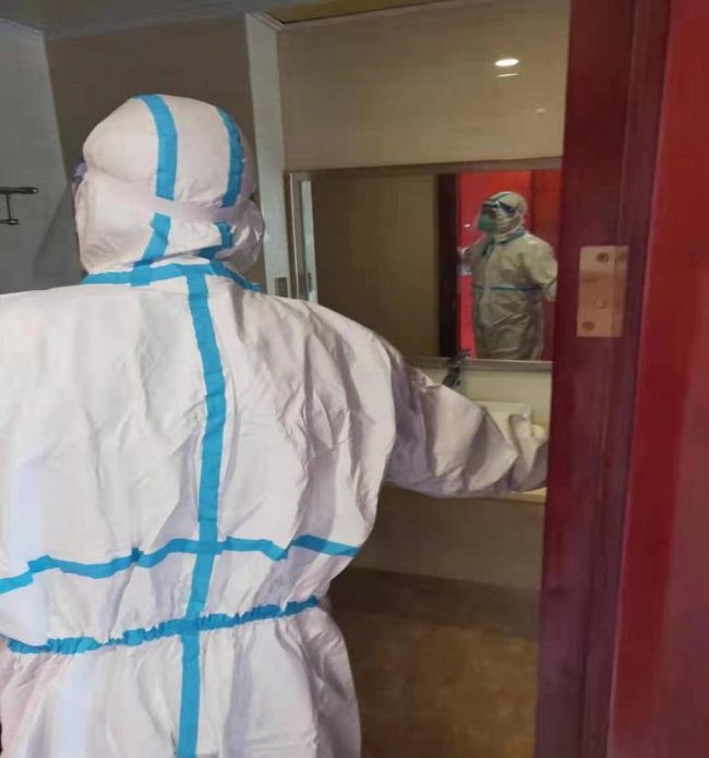 董事長詳細(xì)詢問了隔離酒店有關(guān)防疫措施、安保管理、醫(yī)療保障等情況,查閱了駐點工作臺賬,現(xiàn)場提出了防疫工作還需改善的事項,要求盡快完善防疫設(shè)施、設(shè)備配套工作,部分醫(yī)學(xué)觀察區(qū)間要及時增加空調(diào),室內(nèi)外區(qū)域要加強(qiáng)消毒、消殺管理。