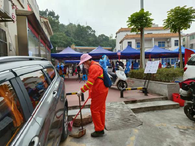 匯建公司環(huán)衛(wèi)工人不畏嚴寒、盡職盡責(zé),幫助社區(qū)工作人員迅速搭建核酸檢測設(shè)施,引導(dǎo)社區(qū)居民掃碼,細致做好核酸檢測點各項工作,扛起責(zé)任與擔(dān)當。