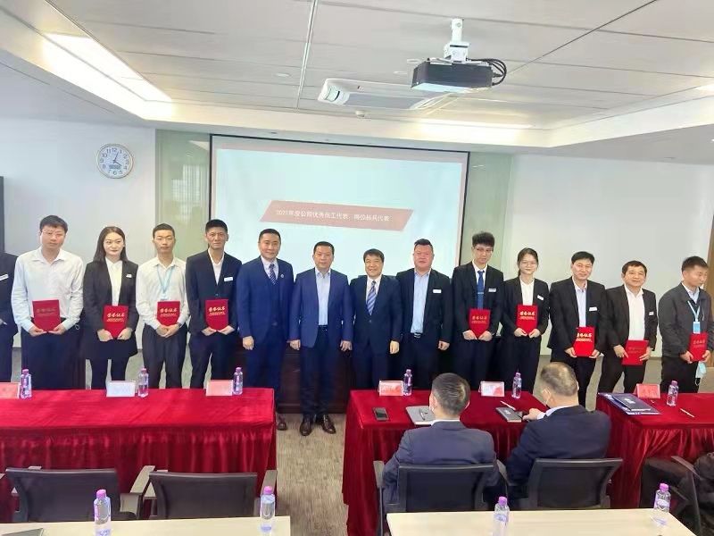 會上,龍總帶領資產(chǎn)公司班子成員為獲得2021年度優(yōu)秀員工、崗位標兵和疫情防控先進個人稱號的代表頒發(fā)了榮譽證書,并同他們親切合影留念。