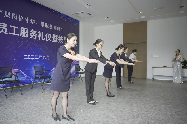 客服技能展示以賓客引導(dǎo)、員工坐姿、站姿、倒水等內(nèi)容展開(kāi)角逐,展現(xiàn)出了服務(wù)優(yōu)秀的客服應(yīng)有的才能。